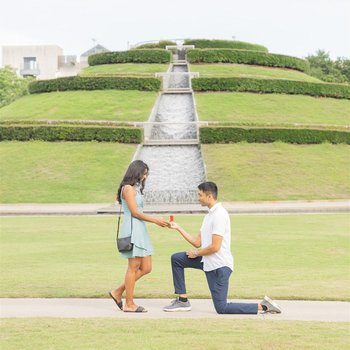 We started the morning with a wild goose chase for Abi's car registration papers. We were about to leave to go for a walk in the park when Abi started apologizing that the registration papers for his new car had been mailed to the wrong place, so we had to meet his former roommate first since he was about to leave overseas for work. We walked all over Hermann park looking for him, while Abi led me to the gardens. All of a sudden, Abi got down on one knee and asked me to marry him! I can't remember a word he said, but I do remember very quickly saying yes. He had a photographer capture the moment and then we took pictures at my new favorite spot in Houston. After the initial surprise wore off, I asked if we should go look for the registration papers, but Abi had different plans for the day: